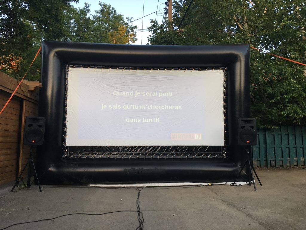 Karaoké et projection privée pour une fête de voisins dans une ruelle près de la rue Christophe-Colomb à Montréal.
