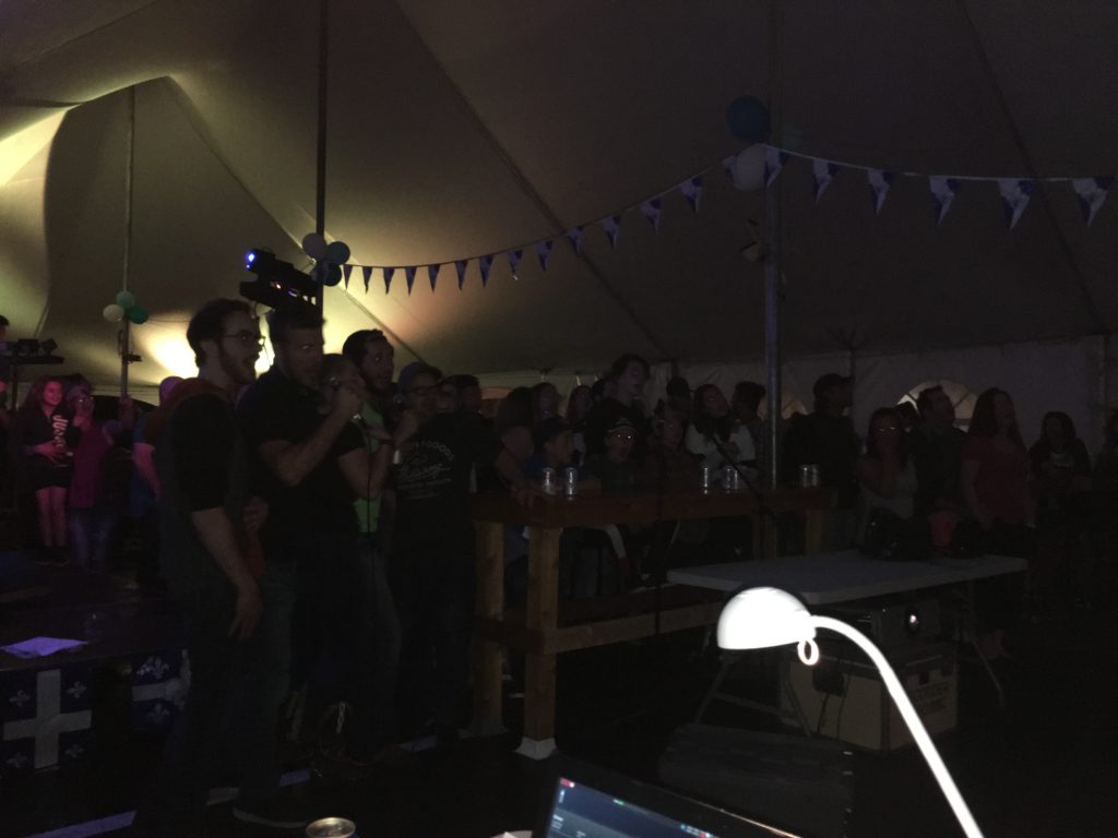 Karaoké et projection privée pour une fête de voisins dans une ruelle près de la rue Christophe-Colomb à Montréal.